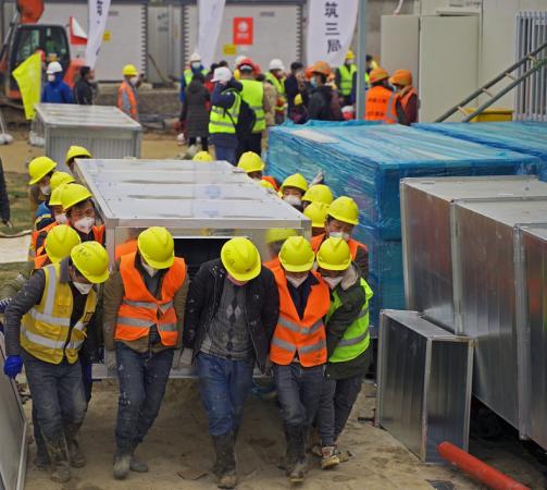 疫情初期,武汉市面临患者数量激增与床位资源严重不足的突出矛盾,中建集团党组第一时间向全系统发出动员令,地处武汉抗疫一线的子企业中建三局当即投入医院建设,中建一局、二局、四局、五局、七局、八局、中建装饰、中建科工、中建安装、中建西部建设、中建科技等11家子企业,组建火神山雷神山医院施工单位党组织,从全国各地昼夜兼程驰援武汉。
